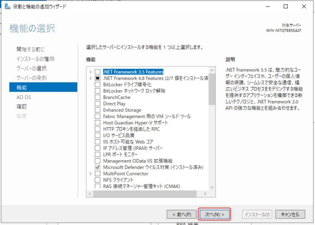 Active Directory ドメインサービスでは、何もせずに「次へ」をクリック