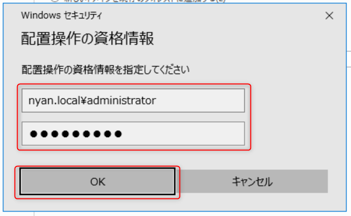 WinSv2016のAdministratorアカウント情報を入力して「OK」をクリック