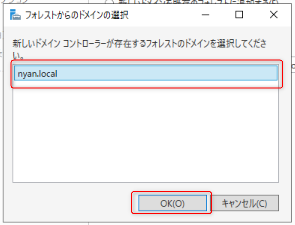 資格情報が問題なければ、フォレストからのドメインの選択が表示されるので、ドメインを選択して「OK」をクリック